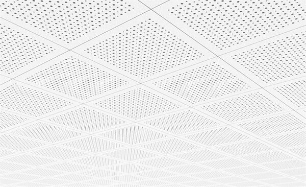 תקרות אקוסטיות מפח פלטות מתכת מחוררות באחוזים משתנים על פי איכות בידוד הרעשים הרצויה |